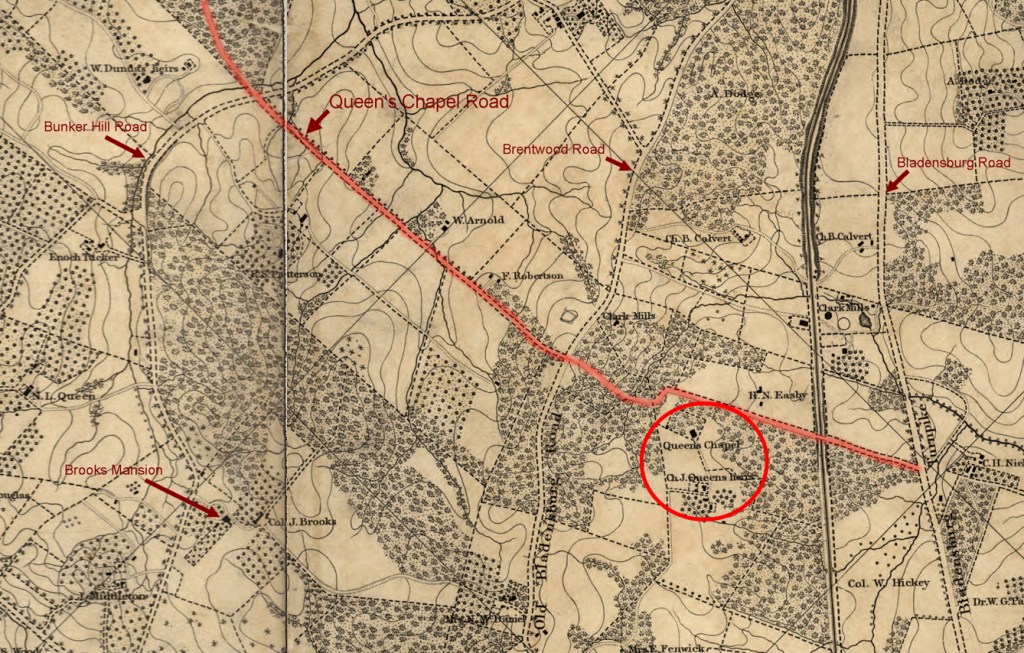When I moved to DC decades ago and first drove out Michigan Avenue I noticed it suddenly became Queen’s Chapel Road as it crossed the Maryland border. What queen? I wondered. What chapel? And then I kept running across little pieces of Queen’s Chapel Road in nearby DC. Just a block or two here and there. It got me curious so I looked into it.
