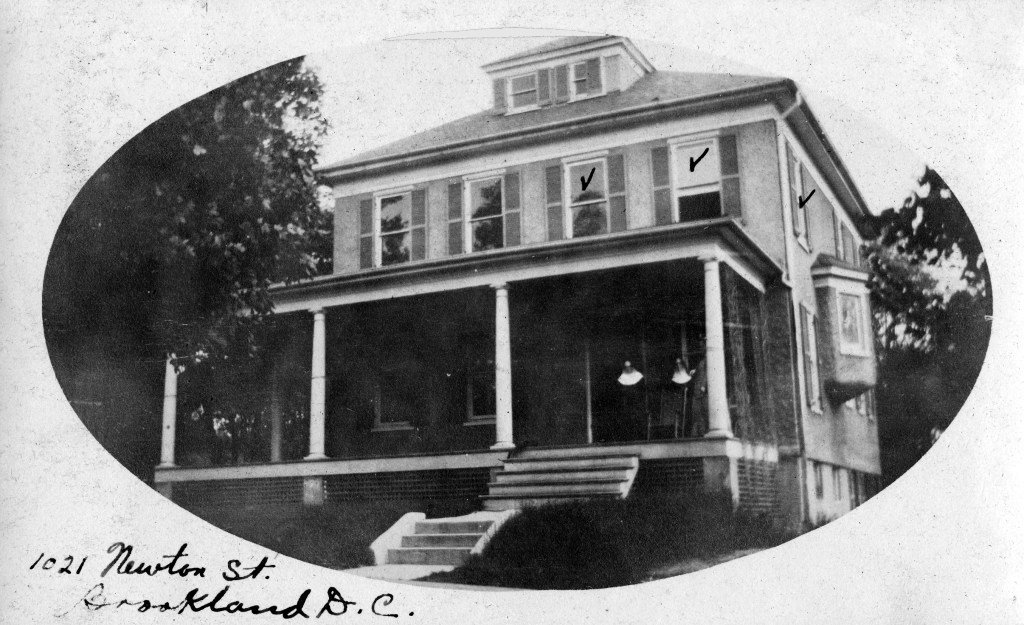 James, in the meantime, decided to leave the gardening business and turned his attention instead to banking. In 1916 he formed the Northeast Building Association, later the Captial City Savings & Loan Association, and was its president for the next three decades. He sold his farm in 1919, bought a house at 1021 Newton Street NE, and moved in with his family. As it turns out, that is the house in which my wife and I currently live. For many years I looked for old photos of the house, but wasn’t able to find any until I wrote the photographic history of Catholic University in 2010. In the University archives I found a photo album from 1911. It had been put together by some nuns who were studying at the Catholic Sisters College, which had just opened that summer. They took a few photos of the Brookland home where they were renting a room – my home.