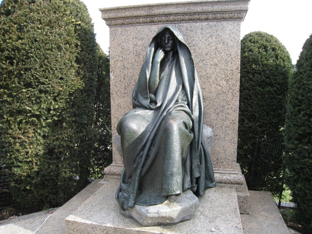 7.) Rock Creek Cemetery: Rock Creek Church Road and Webster Street NW. It is the oldest active cemetery in the city. Started in 1719 as an Anglican “chapel of ease” (as opposed to a formal parish), Rock Creek Church tended to the religious needs of the sparse population of western Prince George’s County, of which it was then a part. It is now non-denominational, and is most known for some of its significant artwork. There are sculptures by Gutzon Borglum (who created the Mount Rushmore memorial) and most famously Augustus Saint-Gaudens, whose work on the Adams Memorial has become internationally renowned. Popularly known as “Grief,” the formal name of the sculpture is “The Mystery of the Hereafter and The Peace of God that Passeth Understanding.”