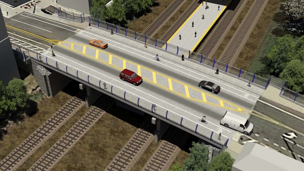 If not over the tracks, how about under them? Studies actually were made for an undergrade crossing, but to achieve that, Bunker Hill Road would have had to be further lowered to a point where it would be too steep for streetcars to traverse. So that idea was out too.