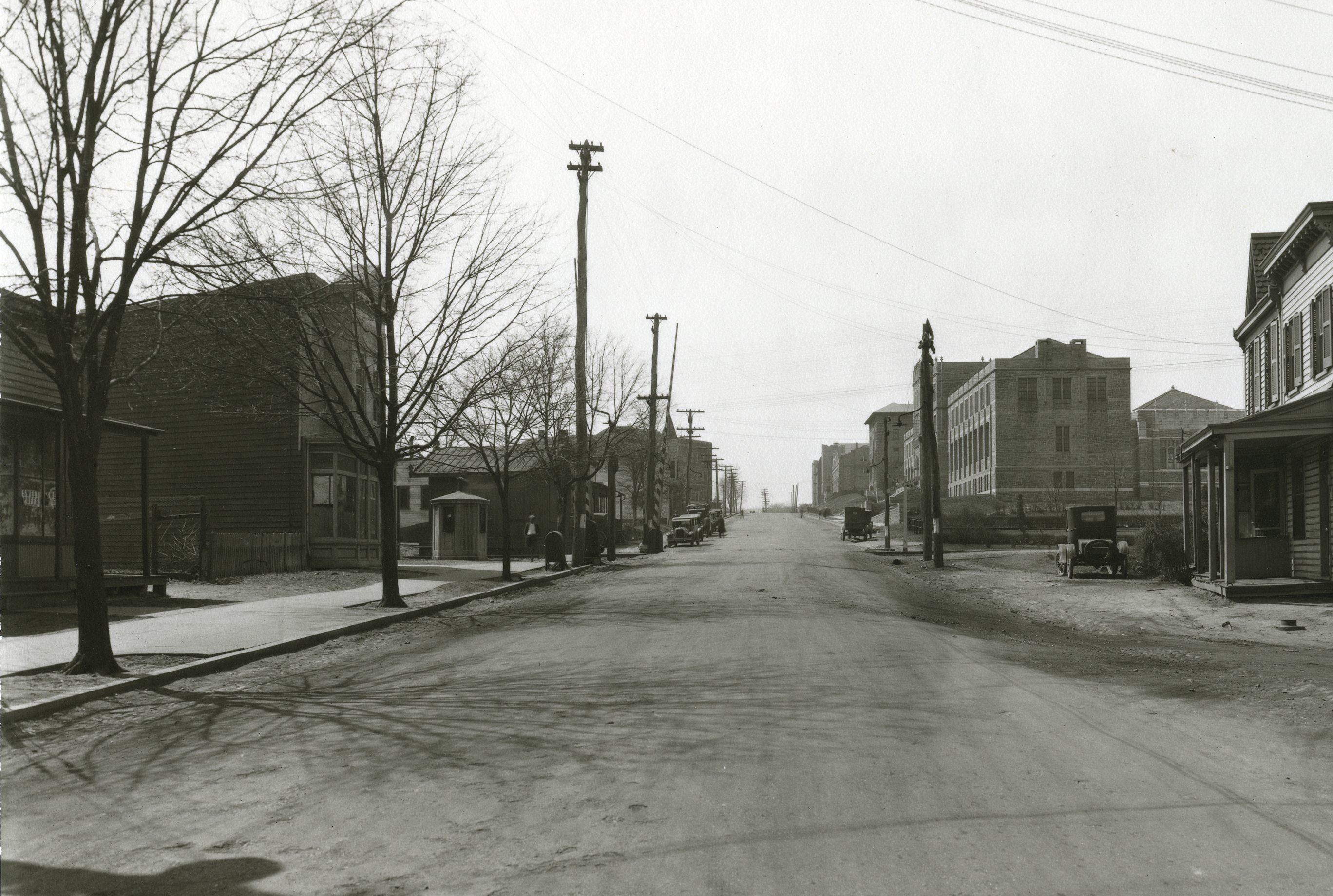 Before the Monroe Street bridge, Brookland’s commerical area was clustered around the intersection of the Baltimore and Ohio Railroad tracks and Bunker Hill Road (soon to be renamed Michigan Avenue). In addition to the train station, there were coal and freight yards and numerous small shops, including a bakery, restaurant, grocery store, post office, and even a Town Hall building. But there was a hazard: that intersection was a grade crossing, with the railroad tracks level with Bunker Hill Road.