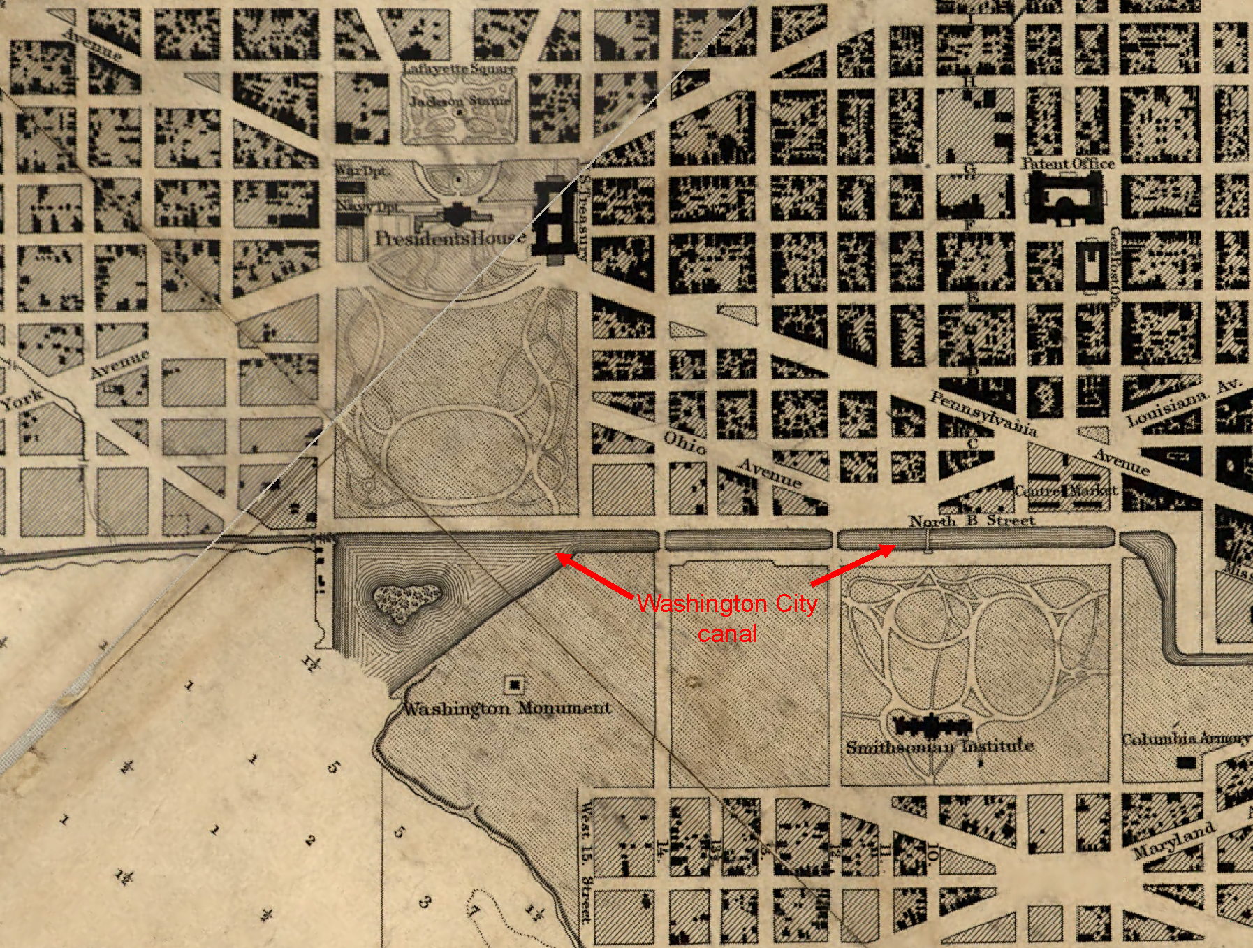 At the same time, the government was giving serious consideration to finding a new location for the Executive Mansion. The established White House site was considered unhealthy in the summer, thanks to the putrid Washington City Canal (Tiber Creek) that ran through downtown and spilled into the Potomac in the swampy area just south of the mansion. Major Nathaniel Michler of the Army Corps of Engineers was assigned to “inquire whether a tract of land of not less than 350 acres adjoining or very near the city can be obtained for a reasonable price for a park and site for a presidential Mansion…” Michler scouted a number of sites, and Metropolis View was a leading candidate:
