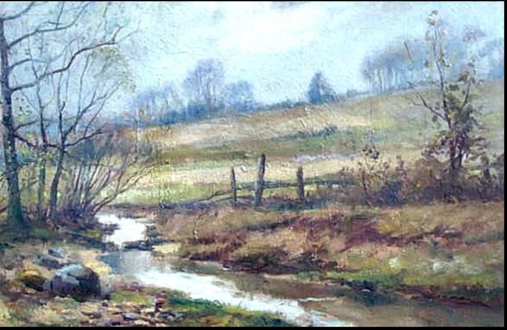 Well, not really a river, more like brooks and creeks, and they were liberally sprinkled throughout the Brookland region. The painting above, titled “Brookland, D.C.” by Edgar Hewitt Nye (1879 – 1943), gives a good impression of the bucolic nature of the land just as development was beginning back at the turn of the 20th century. As streets were laid out and houses built, the creeks were piped underground, until today there are none to be found freely flowing above ground in Brookland.