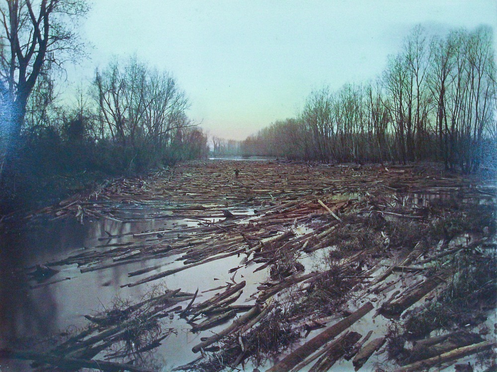 The Great Raft began forming long before any Europeans arrived on the scene. The banks of the Red River were composed of erodible soil, and with periodic flooding, trees that line the banks were easily dislodged. There were other log jams on American rivers, but none like this. At its peak, the Great Raft reached 165 miles in length. Red River historian Robin Cole-Jett put it this way: