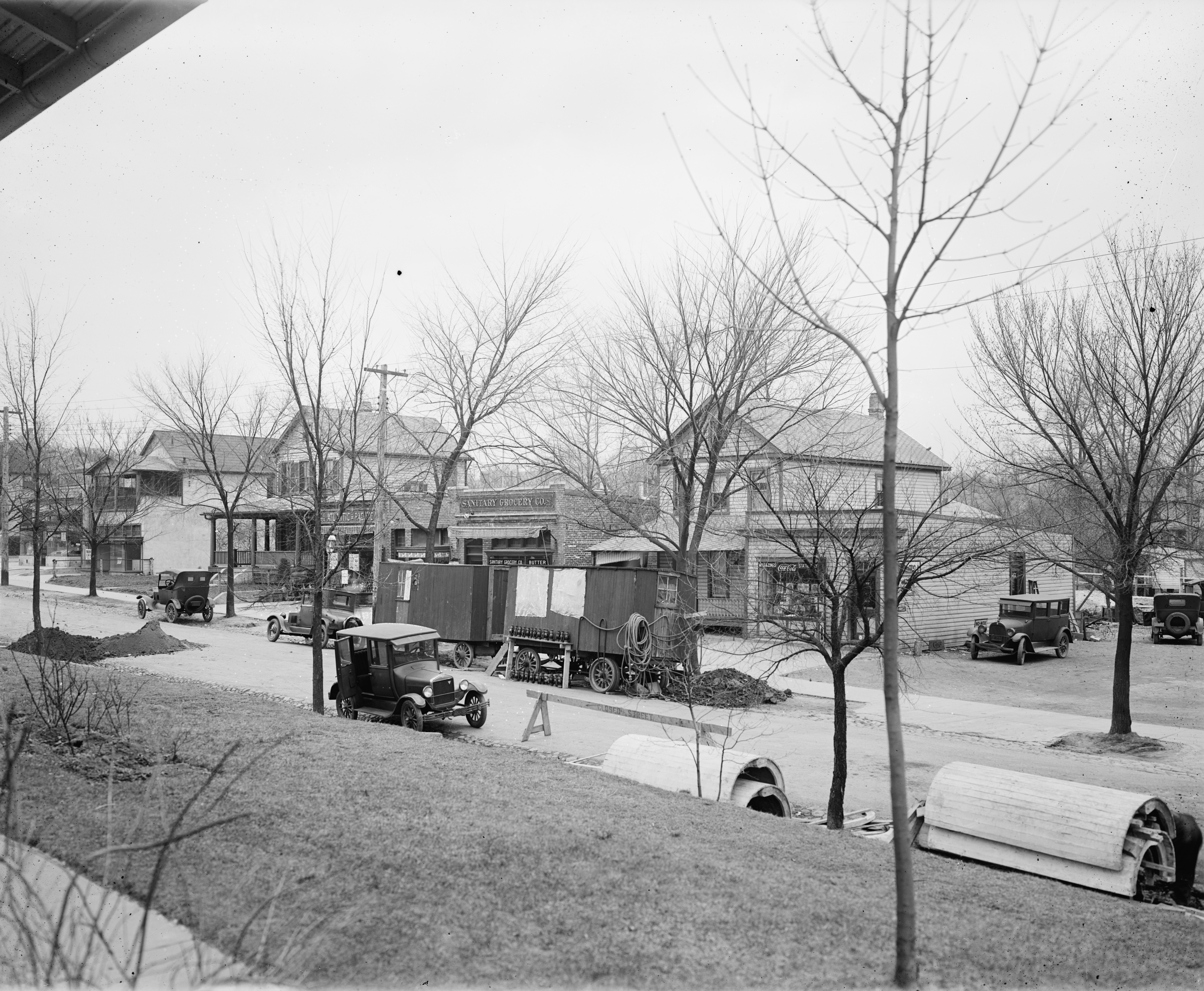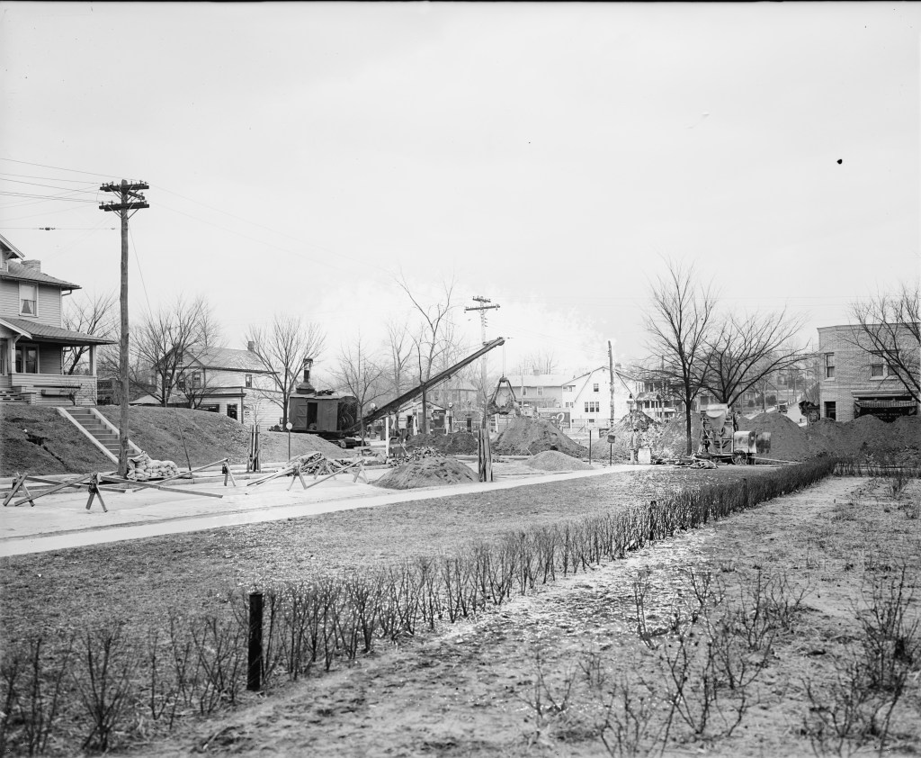 While searching through the Library of Congress website, I came across two photos that had very little information listed. This one I recognized immediately as the intersection at 18th & Monroe. The photo is from 1928, nearly a century ago, and what looks like sewer work is being done on both streets. The camera faces west from the grounds of the Burroughs School on Monroe Street, then just a few years old.