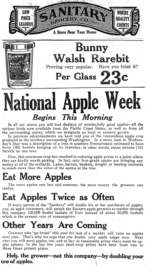 From right to left, there is John Tobin’s variety store, opened next to his service station. Then there is the Tobin home, and next to it at 3418 18th Street, is the Sanitary Grocery Company store. John Letts started Sanitary Grocery in 1909 and it quickly grew throughout the Washington area. In 1928 they absorbed the Piggy Wiggly chain and in turn became a subsidiary of Safeway Stores, though they kept the Sanitary Grocery name until 1941.