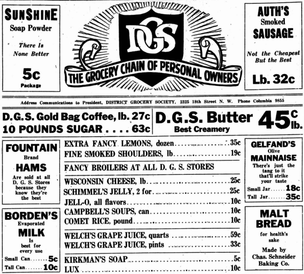 It was part of what was then called the District Grocery Society (D.G.S.), a cooperative of single-room grocers around DC, Virginia, and Maryland, formed in a bid to get better wholesale prices.