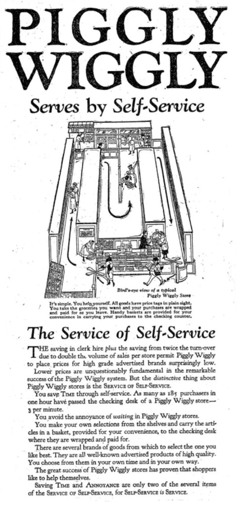 Eschner, Kat, The Bizarre Story of Piggly Wiggly, the First Self-Service Grocery Store, Smithsonian Magazine, 2017