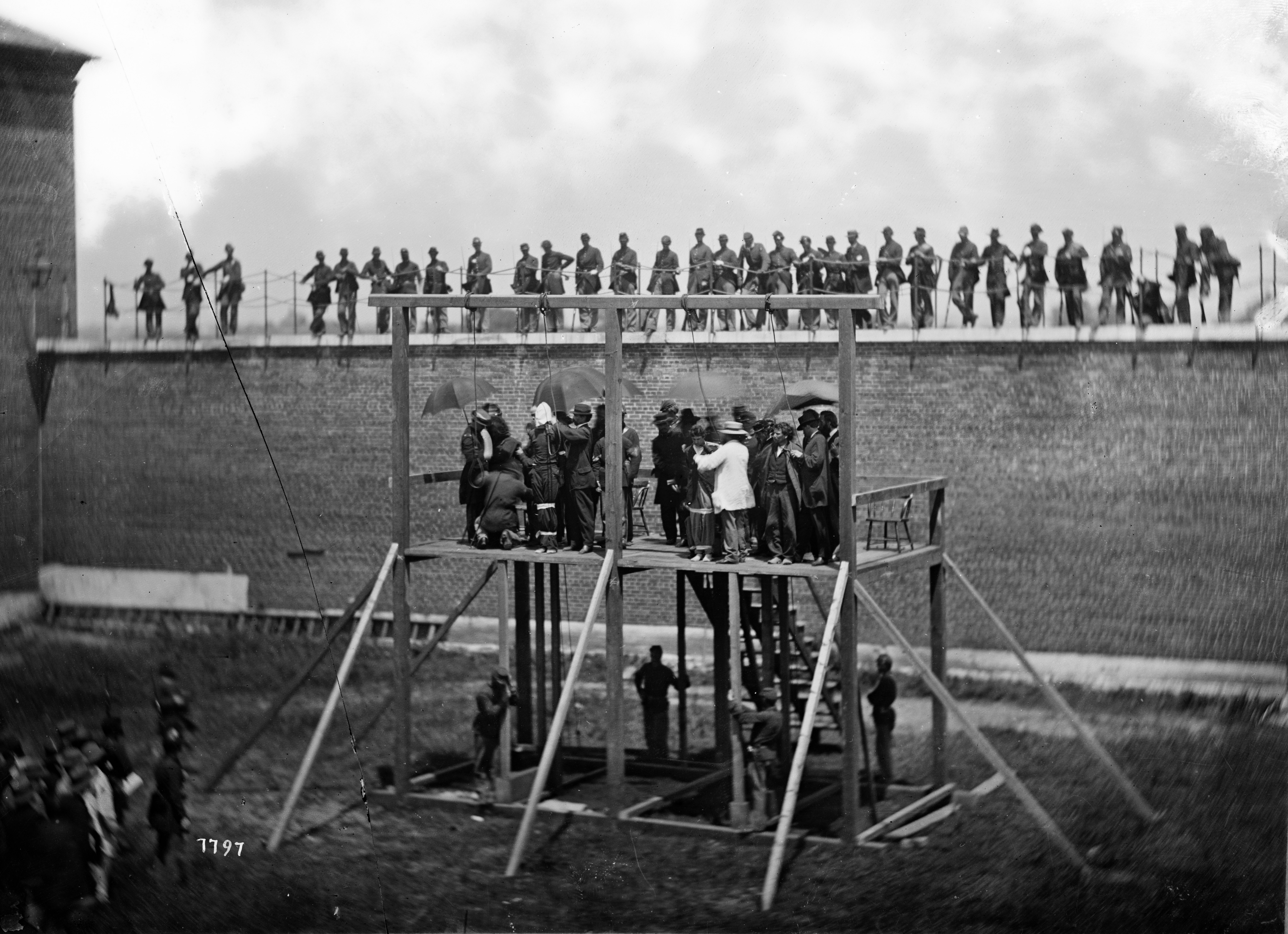 The captain in charge clapped his hands three times. On the third clap, the guards stationed below knocked out the supports for the trap doors. The doors swung down and the four prisoners fell about five feet. Powell lasted the longest, his body twitching and thrashing for five minutes. Twenty minutes later, all four were pronounced dead. They were buried in the Arsenal yard, just a few feet from the gallows.